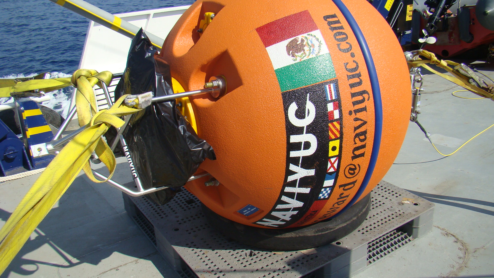 Boya para ADCP Características: Capacidad: 3500 m. Flotabilidad: 234 kg. Tolerancia de flotabilidad: +/-23 kg. Peso nominal en el aire: 469 kg. ADCP Boya Arreglo de Boyas
